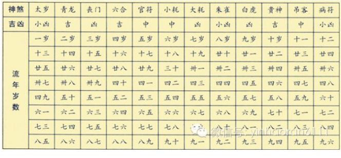 以下的推算过程可以通过这张表来进行,注意表中的“流年岁数”是指你的虚岁,也即你一出生,即算1岁。