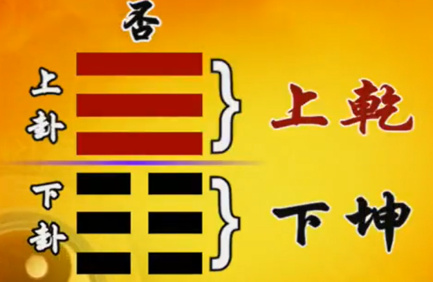 否卦下面是三个阴爻,叫做下坤;上面是三个阳爻叫做上乾。