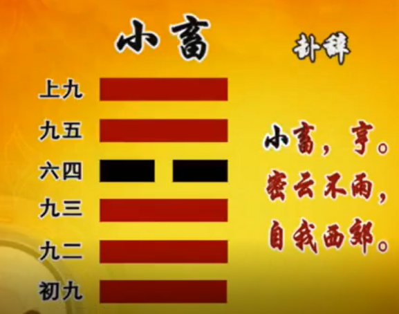 小畜卦是《易经》的第九个卦。小畜几乎是我们长长久久都会碰到的一种状况,一个小家庭经过风风雨雨,经过有时候找工作困难,有时候耕种没有收成等种种考验,人们慢慢就知道,我们多少要有一点储蓄以备不时之需,就是你意想不到的开支。