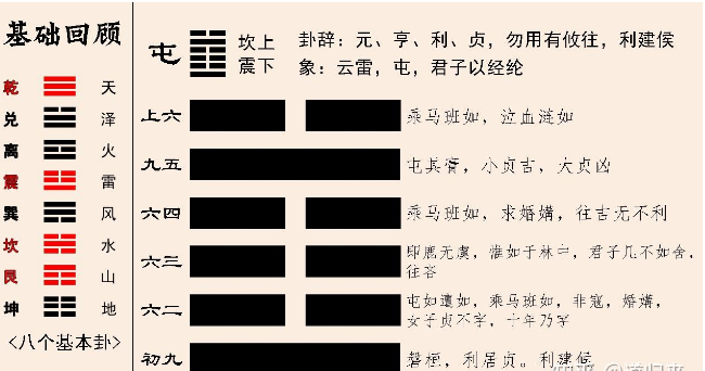 上面就是屯卦里所描述的婚姻,当然这个故事是答主编的,目的仅仅想让大家更好的理解屯卦里的阴阳关系,接下来我们来探索一下,卦象的结构组成。