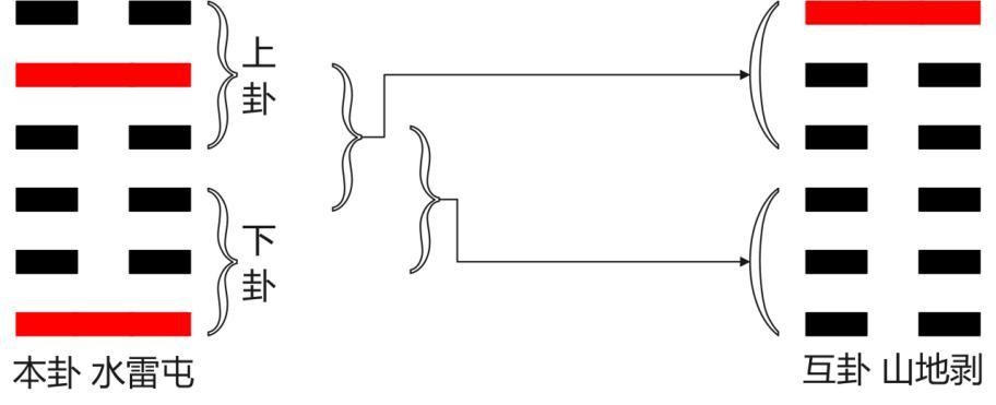 以本卦的三、四、五爻作为上卦,二、三、四爻作为下卦,构成的卦即为互卦,又称内卦、之卦。