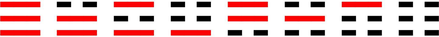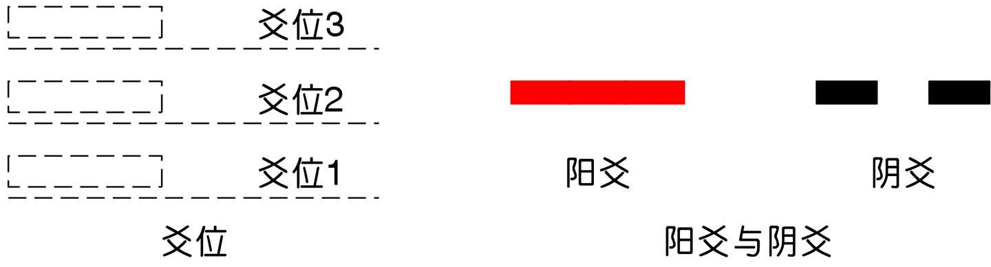 经卦是由三个位置所组成,称为爻位,爻位上由两个东西进行填充,分别为阳爻与阴爻: