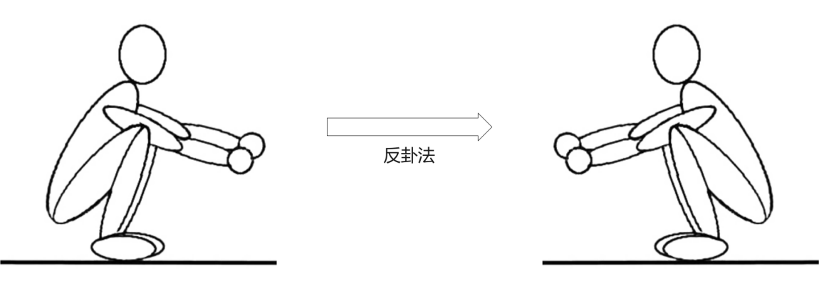 又如平时上厕所蹲的位置,反过来蹲,如下图: