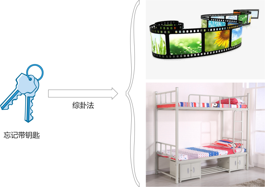比如我们忘记了钥匙放在哪里,那么按照太极博弈原理第一部关于旁系演化的原理,我们若要能回忆到过去钥匙摆放的情景,那么就可以用综卦的思路去布局进而帮助自己拾回那片记忆: