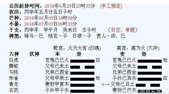排好的六爻卦盘大致如下: